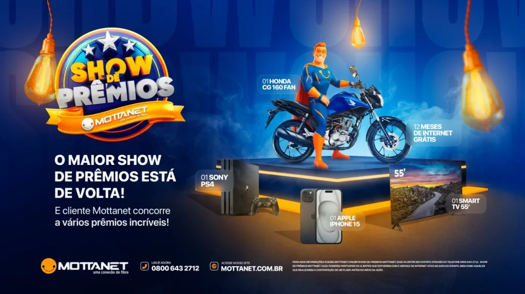 É hora de começar o ano com o pé direito e uma ultravelocidade de sorte! O Show de Prêmios Mottanet está de volta em 2025, ainda mais eletrizante e cheio de presentes que vão transformar o seu dia a dia.